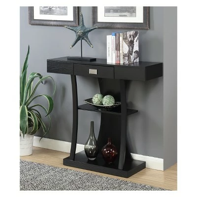 Update your living space with the Newport 1 Drawer Harri Console Table with Shelves by Breighton Home. Featuring a middle and bottom shelf allowing plenty of space to showcase your favorite collectibles. Also featuring a drawer for concealed storage you can hide away all of those unsightly odds and ends. Sturdy construction will ensure that this piece remains a staple in your home for many years to come.