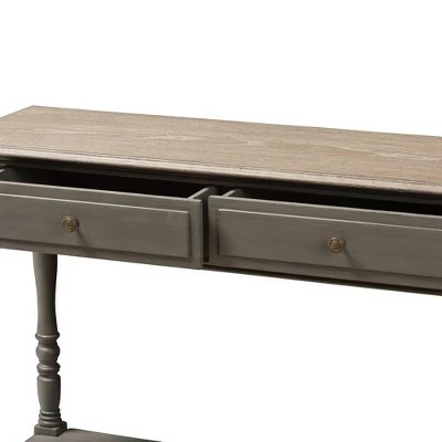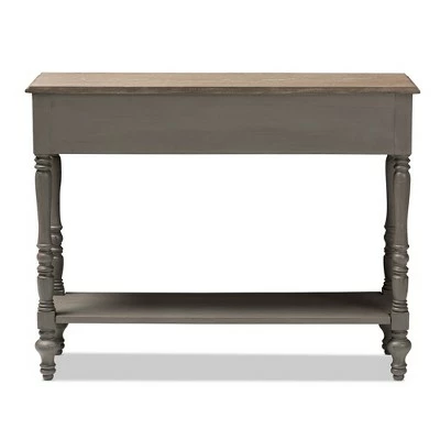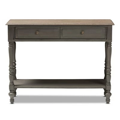 The ornate ball-turned details and the warm brown finish of the Noemie 2-drawer console table will add an element of romance and bygone times to your home. The country cottage farmhouse-inspired design is evident in the amount of detail put into this console table. The Noemie features two pull-out drawers and one bottom shelf for added convenience. Charming, dark bronze finished drawer pulls give the console table a bit of antique style. The Noemie is easy to coordinate with a wide range of styles, including French, rustic, and provincial-inspired decor. Add the Noemie to your entryway or mudroom to delight visitors. Made in Indonesia, the console table requires assembly.