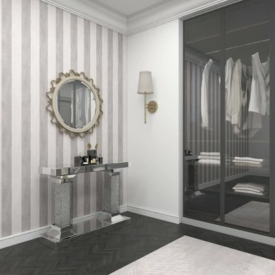 - A wide opulent console table made MDF wood frame and reflective mirror exterior