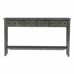 Simple yet bold small metal and acrylic shelves. Contemporary style with clean, simple lines and metallic gold finish over the frame with clear acrylic mid-sections and shelves. Stylish accent piece as well as ample space for home storage and display. Designed with black rubber stoppers at the base that prevent scratching furniture and table tops, as well as sliding around. This item ships in one carton. Suitable for indoor use only. Maximum weight limit is 100 lbs. This tall console table has three shelves that measure that measure 38″L x 15″W.Contemporary design.