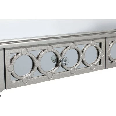 - For that bold statement, each console table is designed with reflective tabletop and accent mirrors