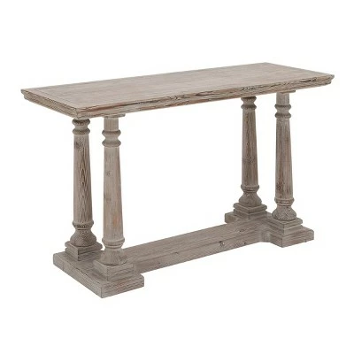 This wooden console table has a light texture and neutral tone that make it an accent piece anywhere inside a vintage home. Bring a finishing touch to your home with an inviting appeal with this console table. A sturdy and long lasting construction that for a years of enjoyment. Designed with protective tip at the base that prevent scratching furniture and table tops, as well as sliding around. Suitable for indoor use only. Some assembly required. 100 lbs. max weight limit. Rustic design.