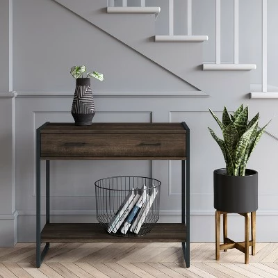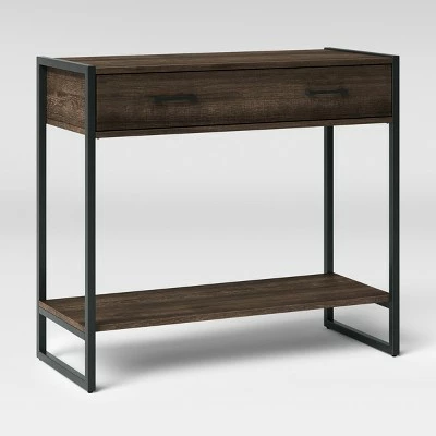 Give a contemporary update to your decor with this Paulo Console Table from Project 62â„¢. Complete with drawers and shelves, this sleek and chic steel-frame console table adds a sophisticated touch of style to your decor. Place it in your entryway and top it with decorative accents to make it a focal point for guests entering your home, or place it behind a couch to help separate rooms while offering extra storage space.