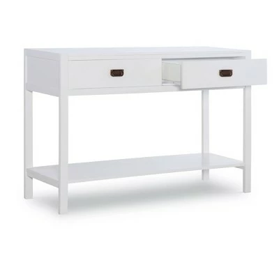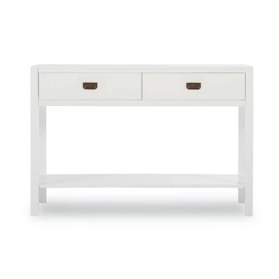 The Peggy Console Table is the perfect accent table to your living space. The console features a white finish accented by rose gold drawer pulls. Two drawers and a large bottom shelf provides ample storage and display space. Sturdy and durable design.