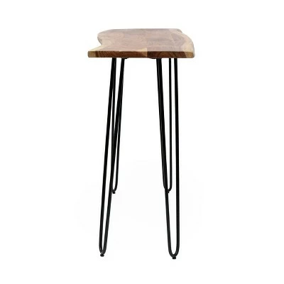 Furnish your entry hall or foyer with an accessory that is sure to impress your guests with a warm and welcoming atmosphere. Our handcrafted modern industrial console table brings a perfect amount of stylish comfort and edgy aesthetics to your home. Featuring a sturdy acacia wood top supported by stunning hairpin legs, our accessory is an excellent centerpiece for any living room or hallway. This is finished with a charming faux live edge design, giving every interior space a refreshing, natural touch.