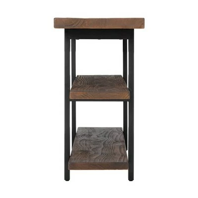 Pomona Media/Console table is versatile for any space. The rustic natural finish and design provide a stylish element to your room. Natural wood variations such as cracks, knots add to the piece’s character. The exquisite workmanship of solid wood tops with metal legs create a piece that will last for years to come. Crafted for both large and small areas, this sturdy design will keep you organized or showcase your 40″ television in a sleek profile.
