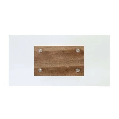 Your incredible sense of interior design style is showcased through this white sofa table, flaunting a modern and chic appearance for your home. A sophisticated glass tabletop is supported by a glass and wood finish geometric structure that will have guests taking a second glance. It’s two-tone design makes it a no-brainer choice as a glass sofa table.