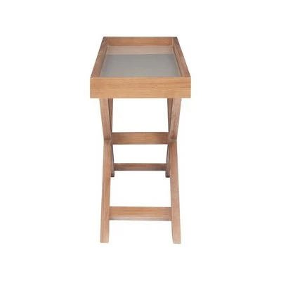 This X base console is perfect for making a subtle statement in your dining room, living room or entryway. A glass top is set within a solid Brazilian pine frame to create an intriguing dimension for the display of flowers, knickknacks, books, and other small decorations. The natural lacquer finish offers extra protection while also highlighting the knots and grains of the wood for a more rustic appearance. Minimal assembly is required.