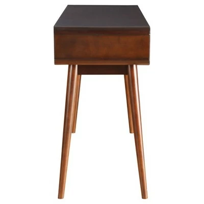- Mid-century modern sofa table offers stunning contrast