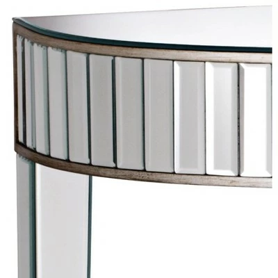 The magic of mirrors shines in this lovely console table design. Mirrored surfaces reflect light and color when placed in any setting.