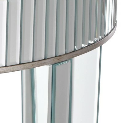 - Mirrored top, front and side surfaces. Antique silver finish. trim. Wood MDF construction.