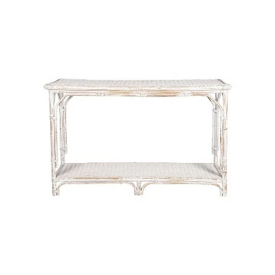 With woven pattern on a lasting rattan pole frame, the handcrafted East at Main Sumba Console Table was designed to bring the charm of another era right into your sunroom or living room. The table is features handwoven rattan with two levels of display space to arrange your books or décor in a way that is practical and pretty.