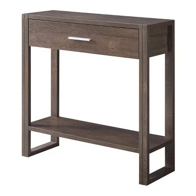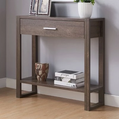 This contemporary console table with 1-drawers and Shelves is a perfect way to bring the feel of modern sophistication to any living space. Unique U-shaped legs accents the table to embrace clean simple lines. The wide drawer offers you to organize miscellaneous household supplies while the open bottom shelf offers plenty of room for books, decorations and more. The bottom shelf is fixed for stability. The surface is an ideal place to brighten up the room with personal touches like plants, pictures, and other decors.