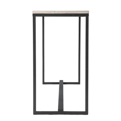 Enhance your décor with the Aiden Lane Thorpe Long Reclaimed Wood Console Table. Sleek metal forms the modern base, while a repurposed wood tabletop gives your home a hint of rustic flair. Tuck this narrow console table behind your living room sofa to display photos and décor pieces, or place in your entryway to welcome you home. Reclaim chic style when you add this industrial sofa table to your den or open concept space.