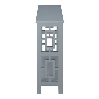 Bring home the eye-catching Town Square Console Table with Shelf by Breighton Home. This simple yet stylish console table showcases an Asian-inspired design with its unique square side panels. An additional bottom shelf provides plenty of decorative space or can be used as storage space if needed. This carefully crafted unit is constructed from MDF and finished with non-lead-based paint for safe, long-term use. Coordinate this console table with additional pieces from the Town Square Collection by Breighton Home, each sold separately.
