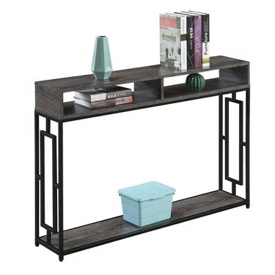 The Town Square Deluxe Console Table with Shelf by Breighton Home makes for the perfect addition to any home. Featuring two open compartments, this additional space is perfect to store anything from books to collectibles. This console table also includes a bottom shelf for additional storage and display. This Town Square Console Table is crafted with a powder coated metal frame to ensure stability and durability. Available in multiple finishes, this console will complete the look of any decor. Shop the complete Town Square Collection by Breighton Home, each sold separately.
