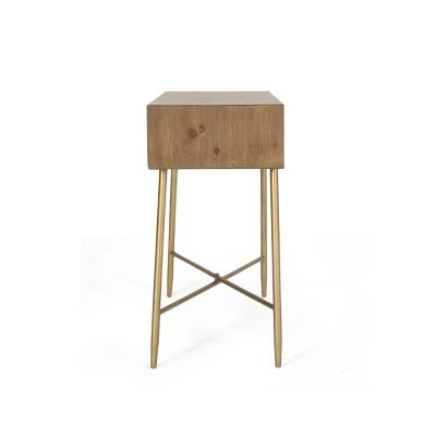 RUSTIC GLAM: Fusing a weathered wood look and a stunning antique gold frame, this console table brings together two unlikely styles to create an elegant yet earthy atmosphere for any space. This time-worn look perfectly balances a crisp brilliance with natural rugged elements for an eye-catching touch to your decor.