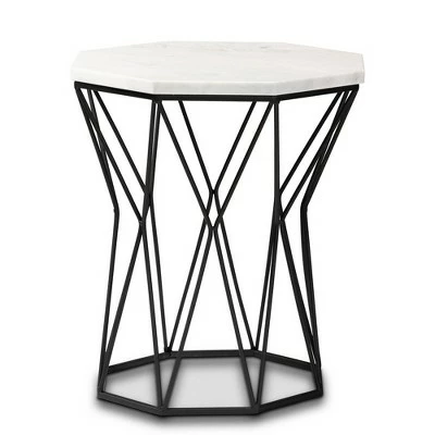 Add a luxurious complement to your space with the stunning Venedict end table. Made in China, this table is comprised of a solid metal frame fitted with a clean marble tabletop. The base features a dynamic openwork design that allows light to flow more easily throughout the room. The Venedict will arrive fully assembled and utilizes an octagon-shaped tabletop with crisp angles that exude geometric charm. A handy piece in a visually striking design, the Venedict end table is a fantastic addition to any space.