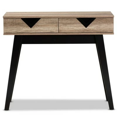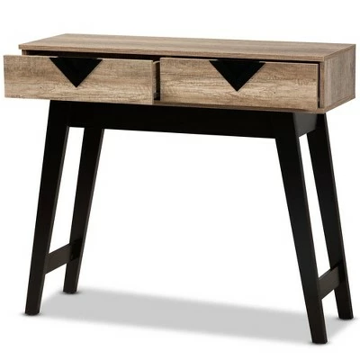 The Wales console table combines function with modern style. Made in Malaysia, this table is constructed from sturdy wood and showcases a sleek geometric design. Two drawers provide secure storage for household essentials while the wide tabletop creates a stunning display for decorative items. Requiring assembly, the Wales is supported by long, angled legs that form an expressive silhouette. Built to last, the Wales console table enhances the layout of any space.