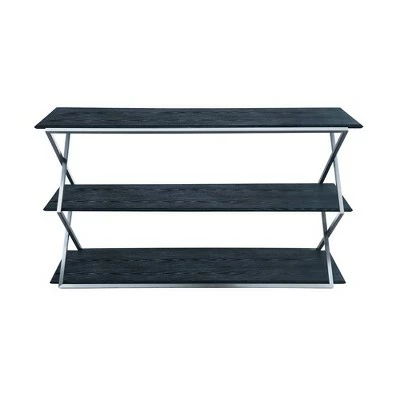 The Westlake Black Wood and Brushed Steel Console Table from Armen Living will help reduce clutter in your entryway or living room area and upgrade your home decor! The Westlake table features three tiers of resting shelves that maximize your storage space – giving you ample surface area to place your favorite personal items or decorative centerpieces. The wood of the console table is waterproof and wear-resistant, fighting off everyday wear and tear and giving you years of enjoyment. The craftsmanship shown through the design of the table is very apparent – the rich silver accents, the unique x-shape frame, and the gorgeous wood all contribute to this special piece.